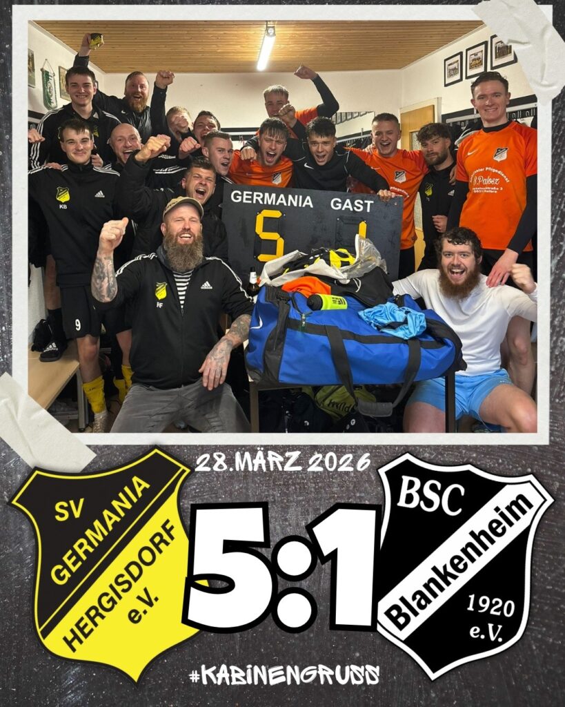 Die Germanen senden nach dem beeindruckenden 5:1-Heimerfolg gegen den BSC Blankenheim im Topspiel (Zweiter gegen Vierter) einen wunderschönen Kabinengruß an alle!🖤💛