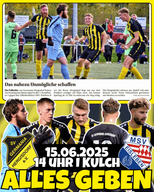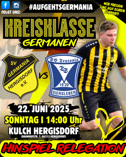 ⚽HINSPIEL der RELEGATION🔥 ⚫️SV GERMANIA HERGISDORF🟡 🆚 🔵SV TEUTONIA SIERSLEBEN⚪️…