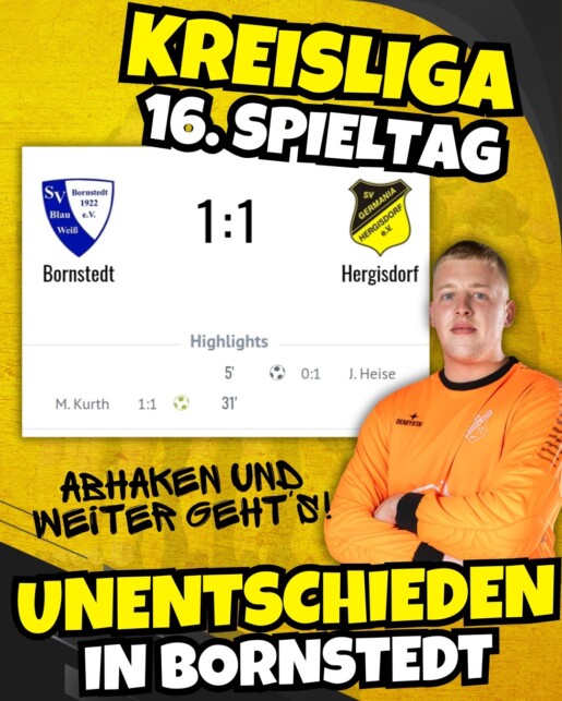 PUNKTETEILUNG in Bornstedt GERMANEN: 1. Team KREISLIGA – 16. Spieltag…