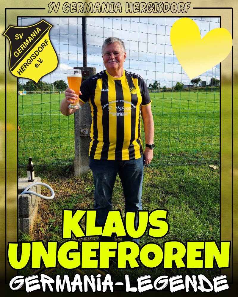 Wer den SV Germania Hergisdorf kennt, kennt auch unseren Klaus. Einst als herausragender Fußballer auf dem Kulch aktiv, ist er nun ein ständiger Begleiter unseres Vereins. Ob bei Jugend-, Frauen- oder Männerspielen. Klaus ist (eigentlich) immer da!😍