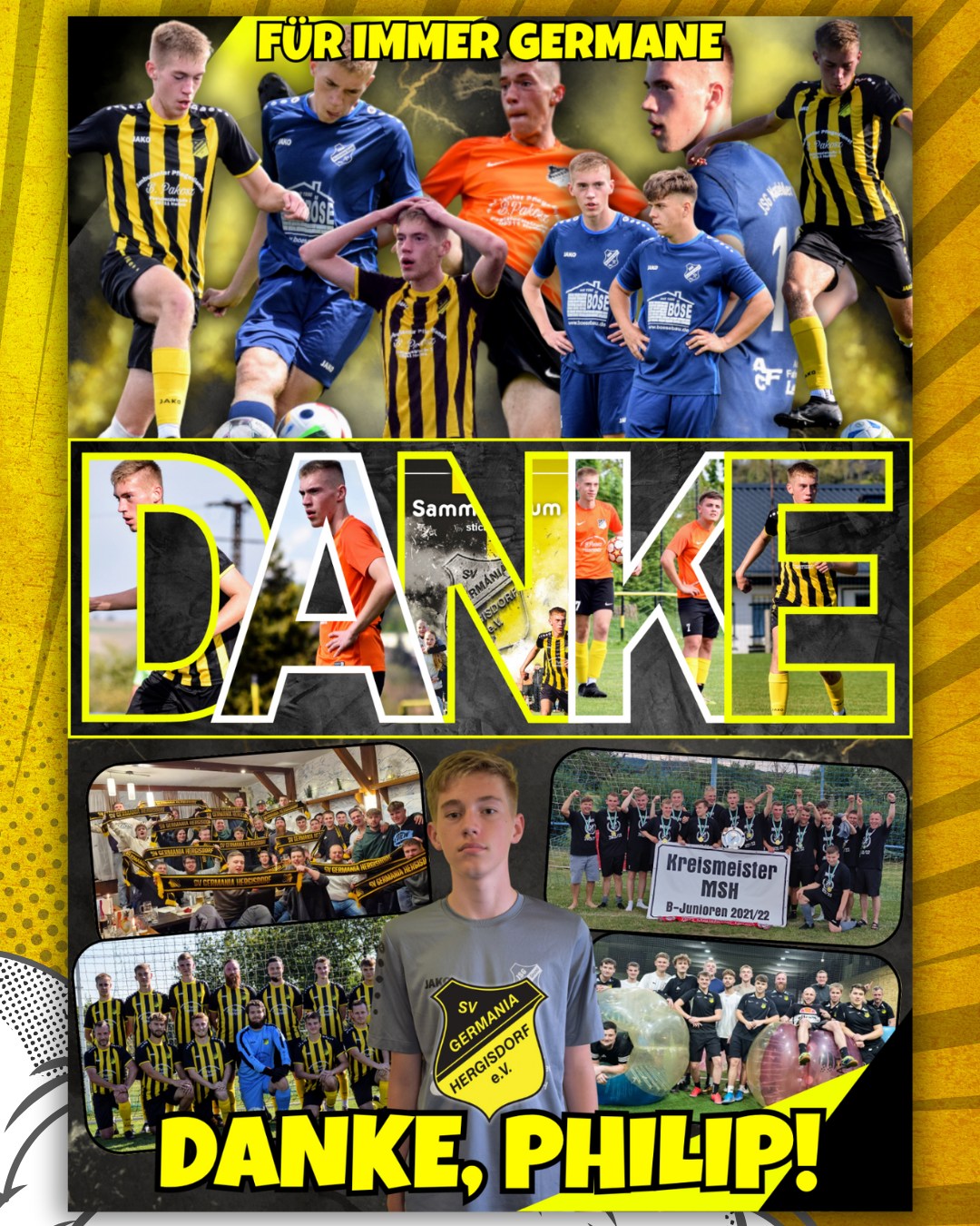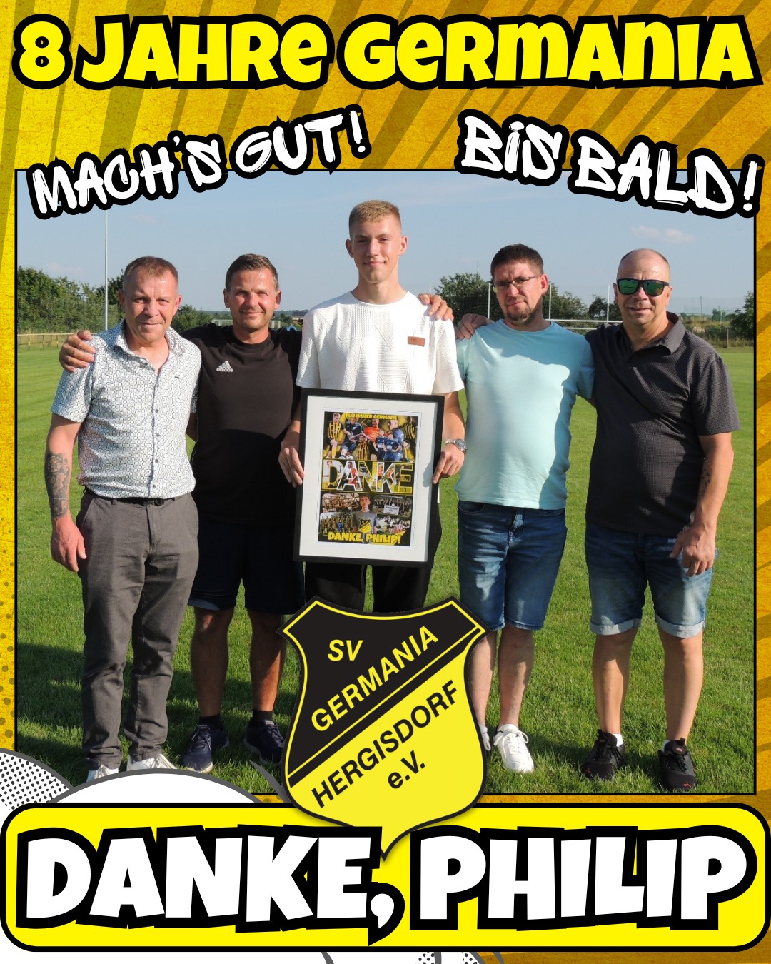 Insgesamt acht Jahre war Philip ein Teil der Germania-Familie. Zunächst in der JSG Mansfelder Grund und später dann im Männerbereich des SV Germania Hergisdorf. Er trug in der abgelaufenen Saison auch maßgeblich zum Aufstieg der Germania in die Kreisliga bei. Speziell hierfür, aber auch für die vielen, tollen Jahre auf dem Kulch sind wir dir sehr dankbar! Bei uns bist du groß geworden, viel Spaß bei deinem neuen Abenteuer!