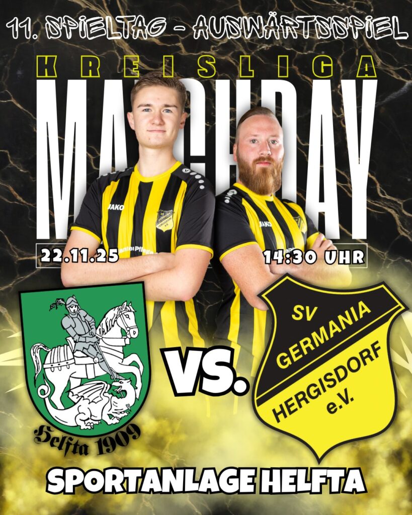 Das LETZTE AUSWÄRTSSPIEL des Jahres! Kommt alle nach Helfta und unterstützt unsere Germanen letztmalig im Jahr 2025! Gegen den Tabellensechsten erwarten wir eine spannende Begegnung!🤩🥳