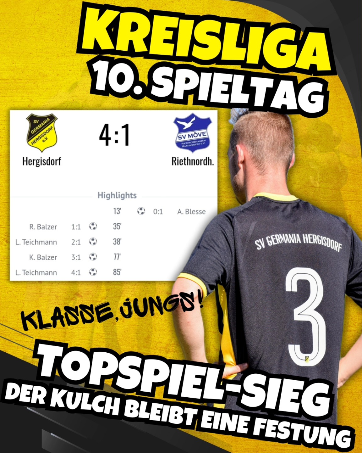 Im Spitzenspiel gegen den Zweitplatzierten, @svmoeve , setzen sich unsere Germanen auf dem Kulch verdient mit 4:1 durch. Nach einer ausgeglichenen ersten Hälfte drehten unsere Jungs in Durchgang zwei richtig auf und holten sich den Heimsieg!![]()