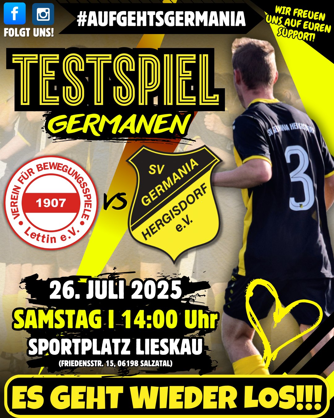 14:00 Uhr erfolgt der Anstoß morgen auf dem Kunstrasenplatz in Lettin (Friedensstr. 15, 06198 Salzatal). Wir freuen uns auf euren Support! Lasst uns die Euphorie der abgelaufenen Spielzeit direkt mitnehmen, um eine tolle Saison zu absolvieren!